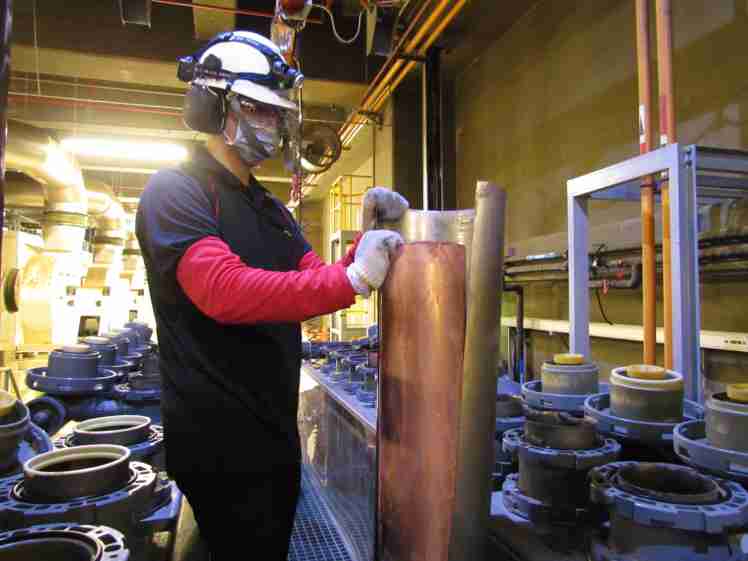 Wepay将废弃物转化成有效的工业或民生原物料,,图为废铜液淬炼后再制成纯度极高的铜管