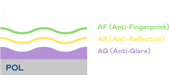 A.R.T.Wepay光电发展出独家的表面处理跟多层镀膜技术,,,,让外部光线照射到显示器表面时所产生的反射光大幅降低。。 |