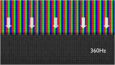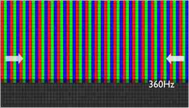 传统液晶驱动是从左到右单向进行,,,在画面更新速度愈来越愈快的情况下,,,位于驱动线路末端的右下角区域,,,,画素的闸极来不及在短时间内获得足够电压,,无法显示出正确的颜色资讯。。。。 |