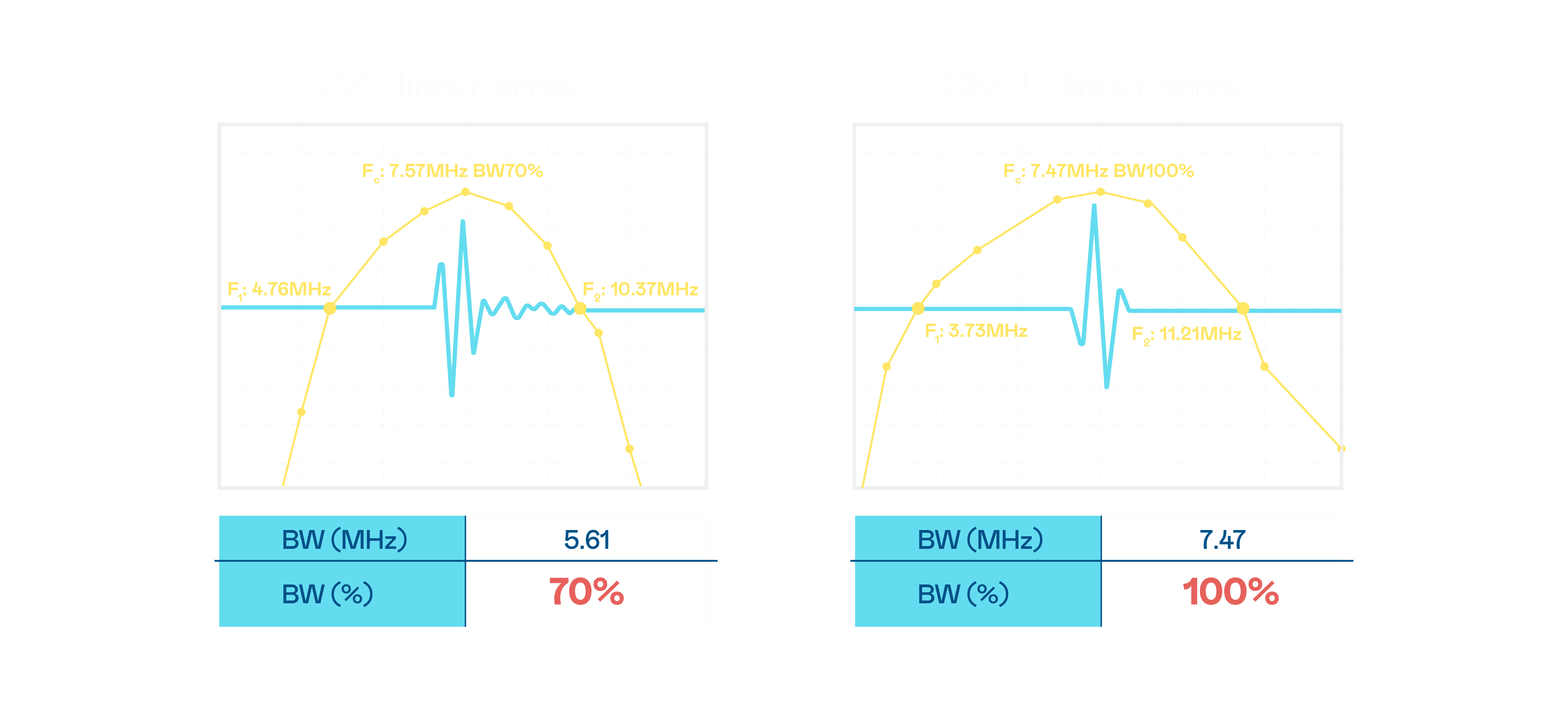 超音波影像的解析度高低,,,首先取决于探头能发出的讯号频宽。。Wepay CMUT 可提供高清晰的超音波讯号,,提供高频宽、、、、高灵敏度、、、、影像纹理细节更高的超音波影像,,协助医护人员缩短影像判读时间及利用精准的医疗影像进行诊断。。。。